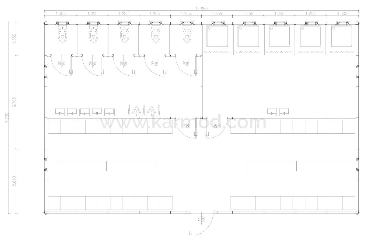 Модульный Туалет с Душем и Переодевальней от Кармод выделяется своей быстрой и практичной установкой. Этот просторный модульный блок площадью 98 кв. метров может быть легко собран и сразу же готов к использованию, что делает его отличным выбором как для временных, так и для постоянных проектов. Кармод, имея референции в 135 странах, стал символом доверия и качества на глобальном рынке. Благодаря прочной конструкции и качественным материалам, этот продукт обеспечивает долгосрочное использование в любых погодных условиях, устраняя необходимость в частой замене или обслуживании.