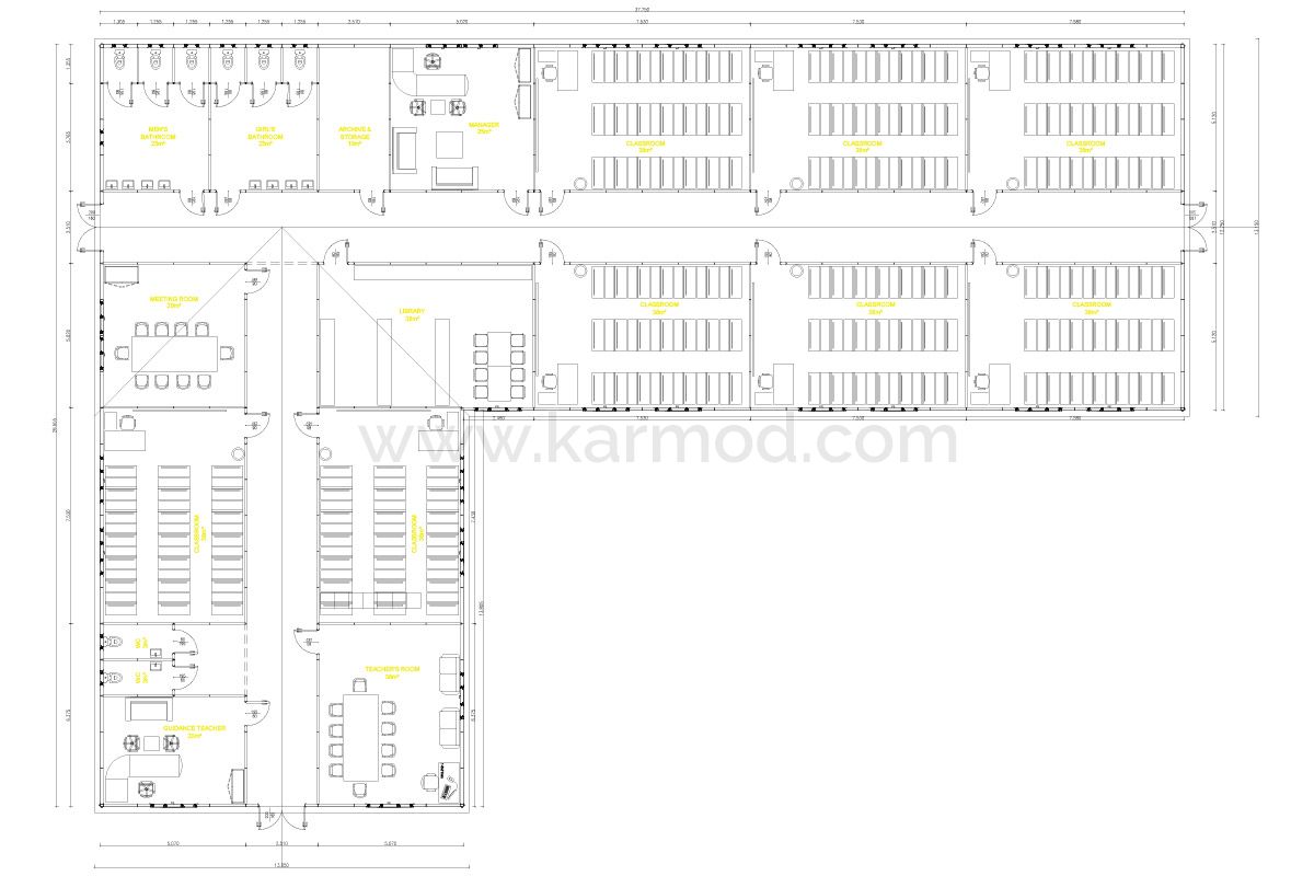 Модульная Школа на 10 Классов от Кармод разработана для удовлетворения потребностей образовательных учреждений в расширении и модернизации. С общей площадью 816 кв. метров, это модульное учебное здание поддерживает любую образовательную программу благодаря своим адаптивным планировкам. Это доступное решение подходит бюджету школ и образовательных учреждений без потери качества. Кармод, предлагая высококачественные и экономически выгодные образовательные инфраструктуры, облегчает доступ каждого ребенка к качественному образованию.