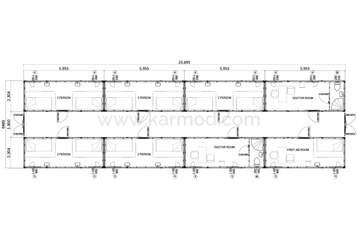 Чрезвычайные ситуации не терпят отлагательств. Поэтому Karmod придает приоритет скорости и эффективности при сборке Контейнерной Клиники 155 м². Наши профессиональные команды быстро устанавливают вашу клинику в любом месте, что вы пожелаете, обеспечивая незамедлительное предоставление экстренных медицинских услуг. Эта просторная площадь 155 м², предлагающая 8 отдельных комнат, обеспечивает конфиденциальность для пациентов, в то время как её большие лечебные зоны повышают эффективность работы медицинского персонала. Решение Karmod по быстрой сборке укрепляет его статус как "наиболее предпочтительного бренда" в отрасли.