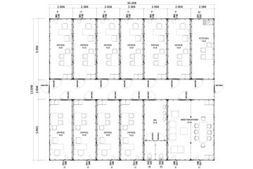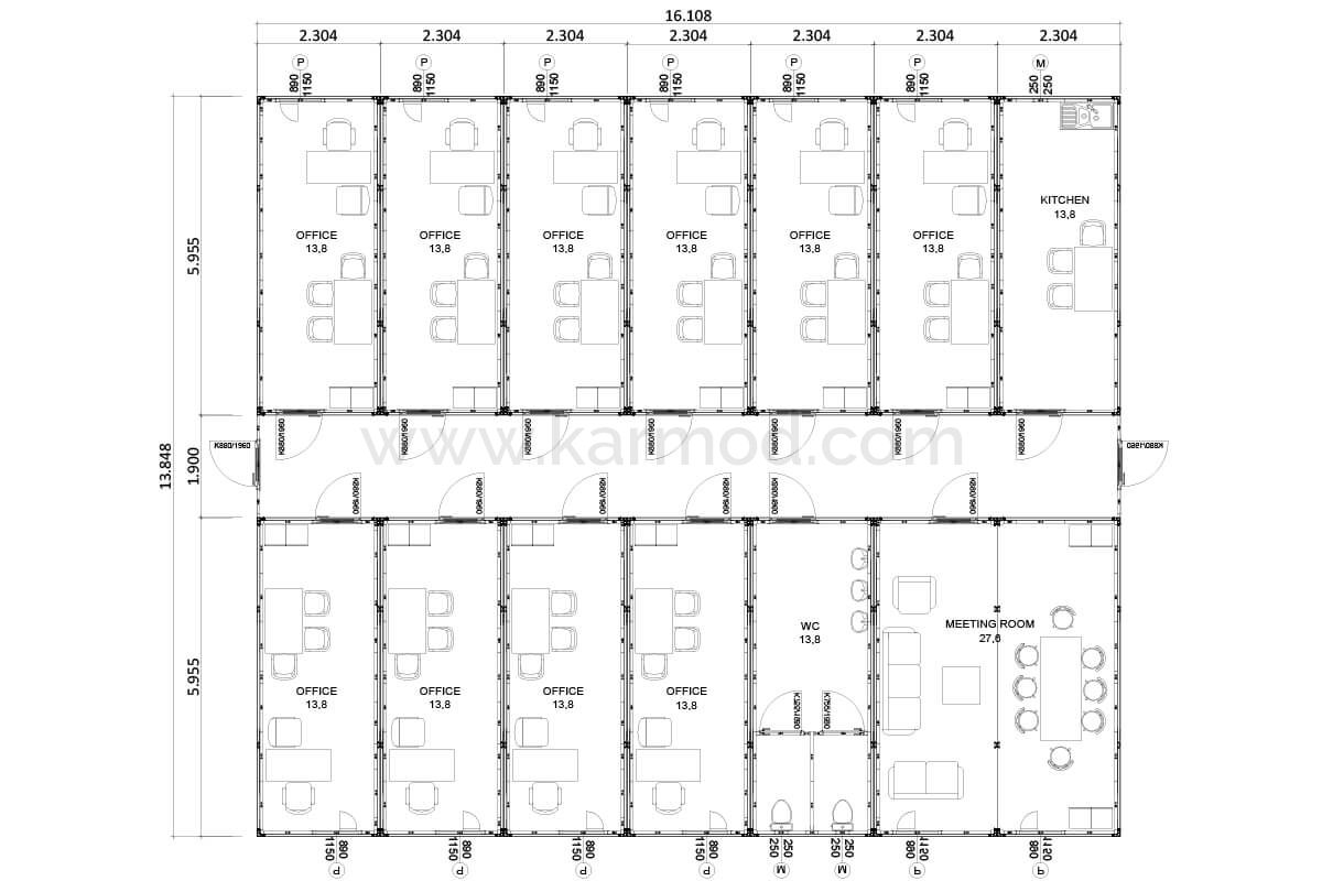 Кармод предлагает 223 м² Офисный Контейнер, обеспечивающий широкое рабочее пространство для десяти человек, внося современные и практичные решения в ожидания делового мира. Этот просторный контейнерный офис идеален для создания рабочей среды, стимулирующей креативность и эффективность. Помимо доступной цены, высокие изоляционные характеристики обеспечивают энергоэффективность и позволяют сотрудникам работать в комфортной среде. Кармод, сочетая качество и функциональность, отвечает на потребности предприятий и команд.