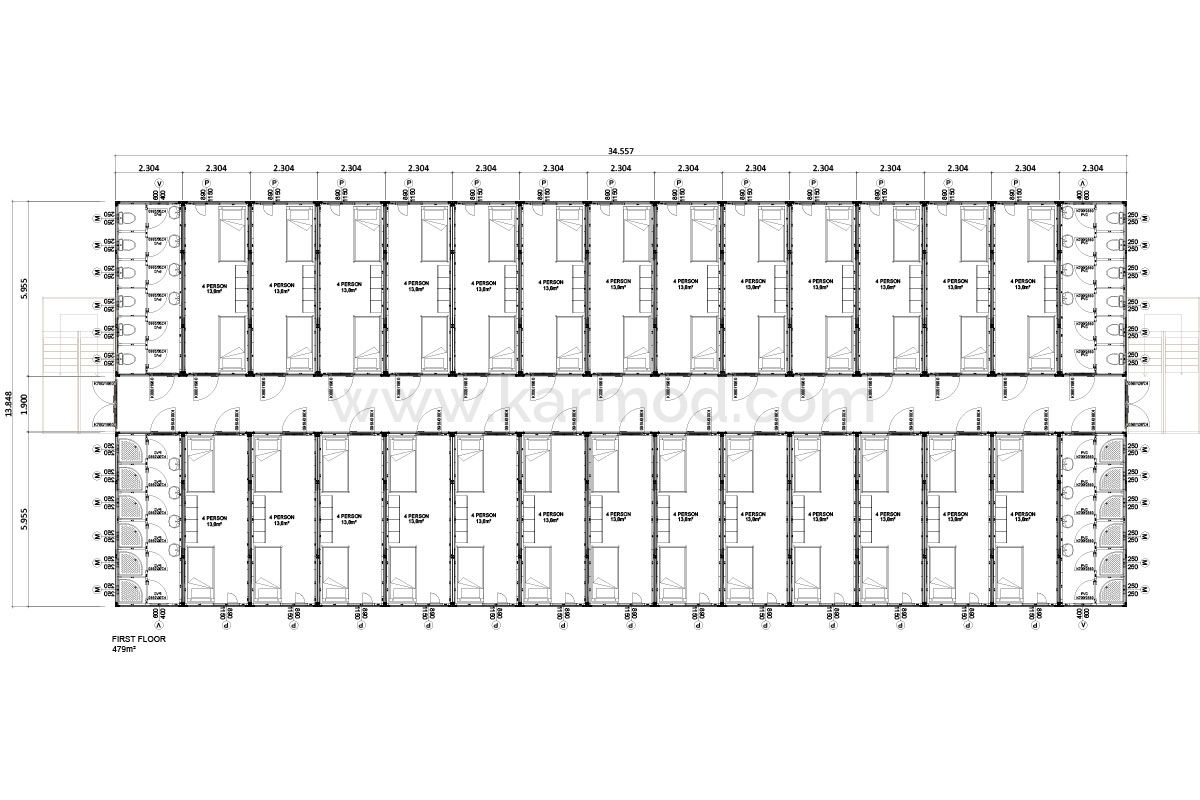 Кармод со своим 312-местным Рабочим Общежитием объединяет качество, комфорт и долговечность. Это 1437 квадратных метров контейнерное общежитие изготовлено из высококачественных материалов с исключительной мастерской работой, обеспечивая долгосрочное использование и максимальную прочность. Высокие изоляционные характеристики предлагают экономию энергии и создают комфортные условия для жизни в любое время года. Кармод, подтверждая свой статус "высококачественной и надежной компании", продолжает лидировать в отрасли, предлагая идеальные условия для проживания на проектах с большим числом рабочей силы, подкрепленные референциями в 135 странах.