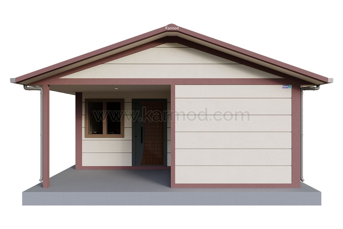 Эта жилая единица, спроектированная с учетом зон использования, может быть использована в качестве летнего дома, загородного дома, дома для садоводства или постоянного проживания. Эстетичные деревянные детали подчеркивают ностальгическую атмосферу двускатной крыши, сохраняя при этом функциональность.