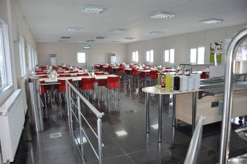 Сборный обеденный зал, изготовленный по высоким стандартам, предлагает своим пользователям гигиеничную и здоровую обеденную среду.