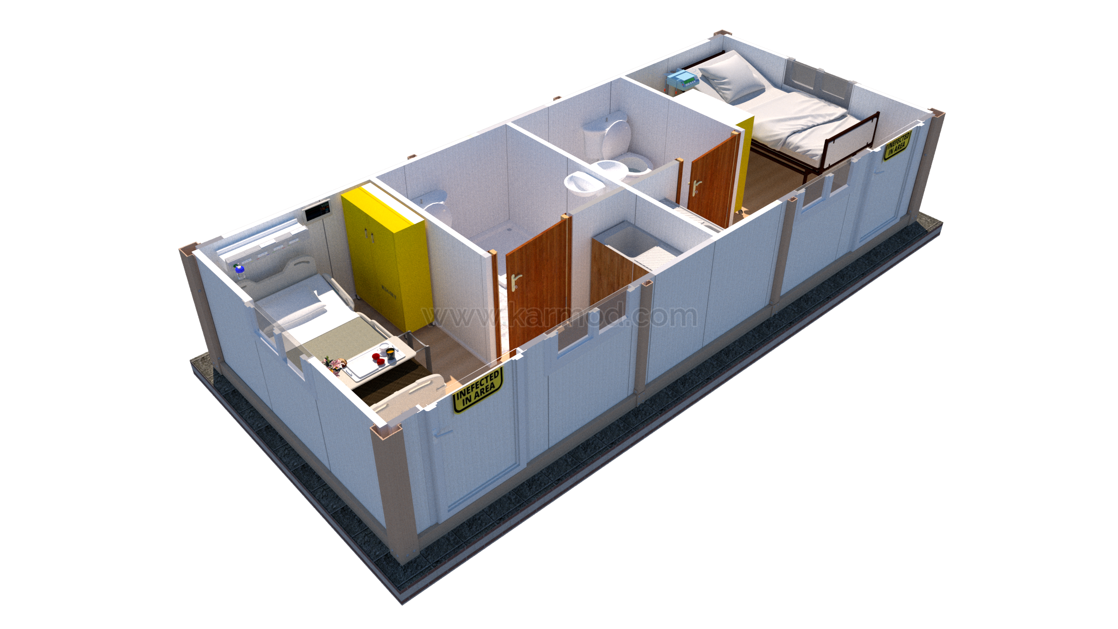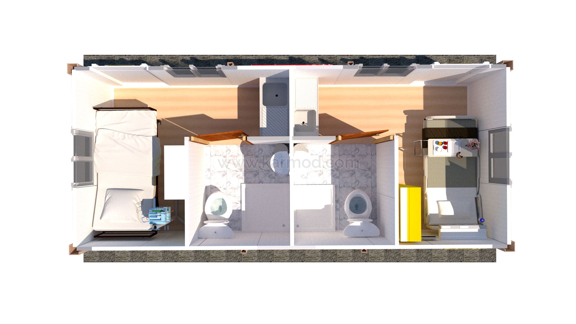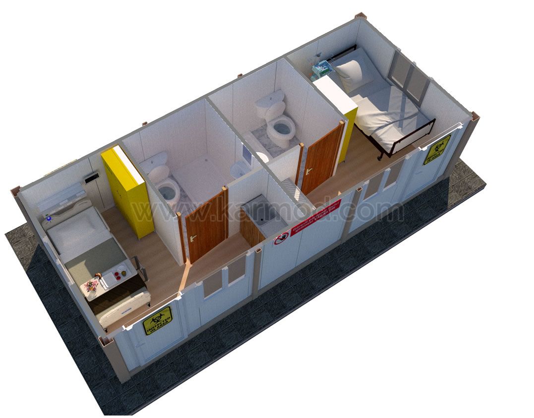 Teknolojik bant sisteminde demonte hızlı üretim, kolay nakliye ve yerinde kısa sürede kurulum Karmod Sağlık Konteyner yapılarının en önemli özelliğidir.