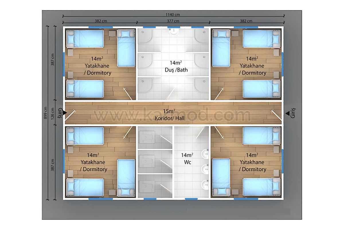Швидкомонтовані будівлі можуть мати будь-які необхідні розміри і планування. Особливо користуються попитом готові проекти, спеціально розроблені нашими інженерами для максимальної зручності та ергономіки. Залежно від площі, є велика кількість різноманітних типових планувань, починаючи від варіантів 1 + 1 і закінчуючи 3 + 1. Компанія Кармод може виробляти збірні елементи під будь-які проекти готових швидкомонтованих будівель.