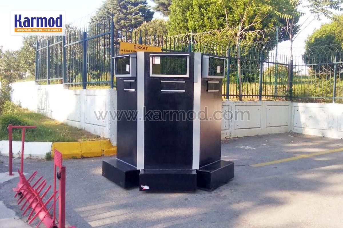 Успішний досвід у виробництві броньованих куленепробивних будок охорони, Кармод переніс на броньоване загородження. Продукт успішно пройшов тести на куленепробивність BR7 і тепер використовується на блок-постах.