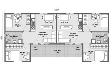 Дуплекс збірний будинок 101 м² поєднує сучасний стиль, просторе планування та комфорт, необхідний для повсякденного сімейного життя. Завдяки раціональному розподілу кімнат цей будинок ідеально підходить для великої родини, заміського проживання або сучасного житла для двох поколінь.