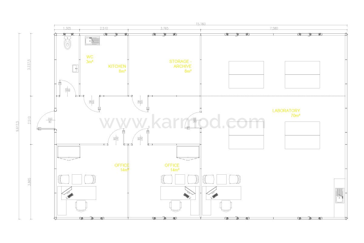 Модульний Хімічний Лабораторний Корпус від Кармод оснащений високоякісними матеріалами та найсучаснішими технологіями. Ці лабораторії розроблені для задоволення різноманітних потреб, таких як дослідження, медичні тести та освітні програми. З можливістю спеціальної конфігурації, кожна лабораторія може задовольнити конкретні вимоги. Кармод відомий своїми інноваційними рішеннями у галузі та є одним із найбільш вибраних брендів. Модульні Лабораторії від надійної компанії Кармод забезпечують міцність та тривале використання.