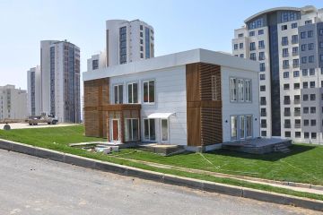 Побудована всього за 9 днів, ця швидкомонтована будівля площею 240 м² спеціально розроблена для запуску проектів і потреб офісу продажів. Розташоване в Стамбулі, це офісне рішення привертає увагу відвідувачів своїм сучасним архітектурним підходом і відображає професійне обличчя вашого бренду.