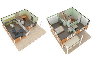 - Ці будинки мають модульну структуру, тобто складаються з збірних одиниць, які можна збирати в будь-якому порядку і формі, прямо як частини конструктора, з яких можна утворювати будь-яку необхідну конструкцію. Конфігурацію можна змінювати під виникають потреби, модифікувати, нарощувати, прибирати непотрібні модулі.