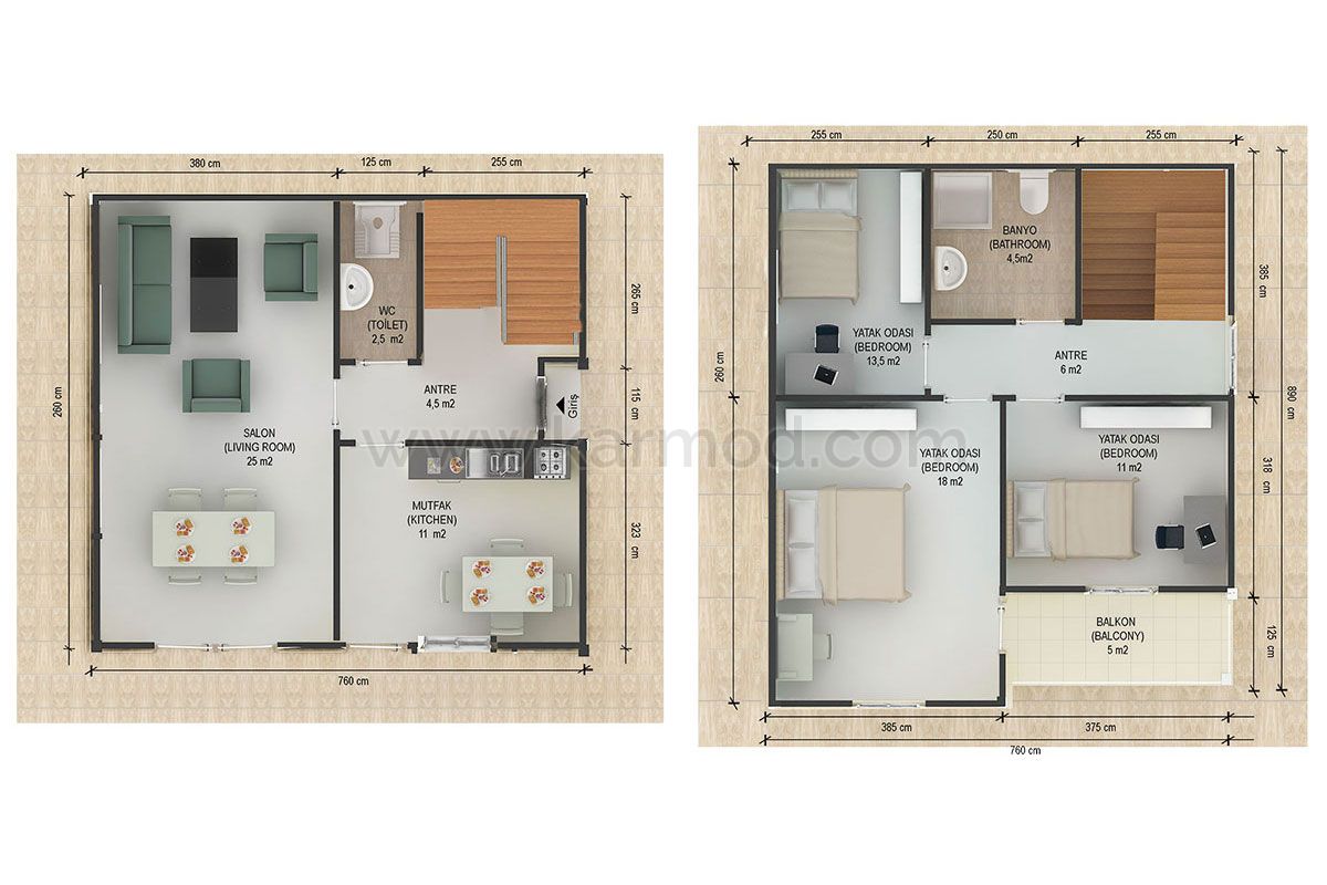НЕСУЧА СПРОМОЖНІСТЬ ШАССИ 200 кг/м² (Для двоповерхових будинків) (розрахунок по турецьким стандартам T.S 498)