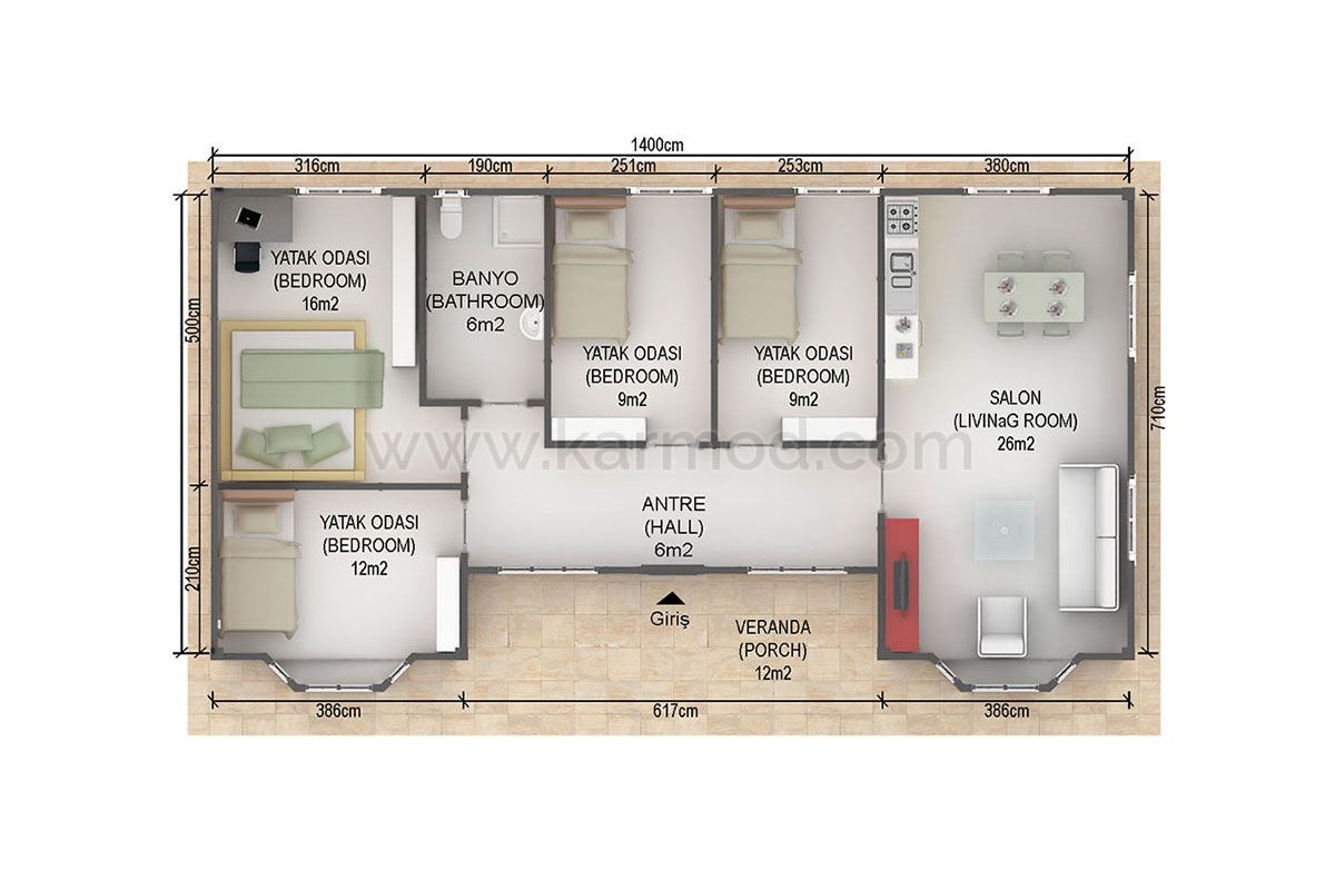 Ми зводимо наші збірні будинки у всіх семи округах Туреччини. Що стосується зарубіжжя, то Кармод експортує свою продукцію в більш, ніж 90 країн. Ми виробляємо будинки на підставі розрахунків наших фахівців, враховуючи кліматичні і фізичні умови місця зведення будинку.