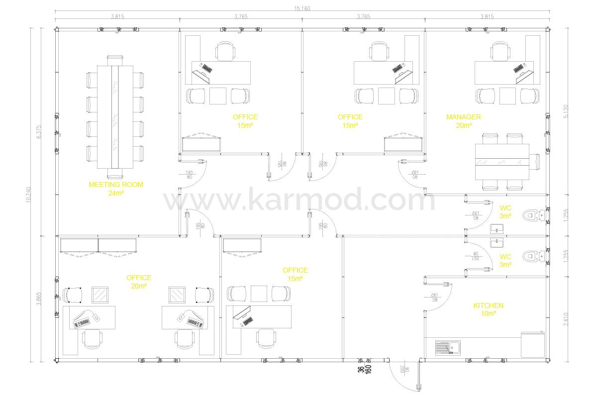 Кармод пропонує просторий та ефективний робочий простір зі своїм Шестимісним Префабрикованим Офісом площею 155 м², який привертає увагу бюджетно-дружніми рішеннями. Цей модульний офіс виділяється завдяки високим ізоляційним характеристикам та енергоефективності, забезпечуючи комфортне робоче середовище у будь-який сезон. Незважаючи на доступну ціну, Кармод не йде на компроміс із високими стандартами якості, задовольняючи потреби як малих та середніх підприємств, так і великих корпоративних компаній. Модель Кармод пропонує ідеальне рішення, що сприяє росту та розвитку вашого бізнесу.