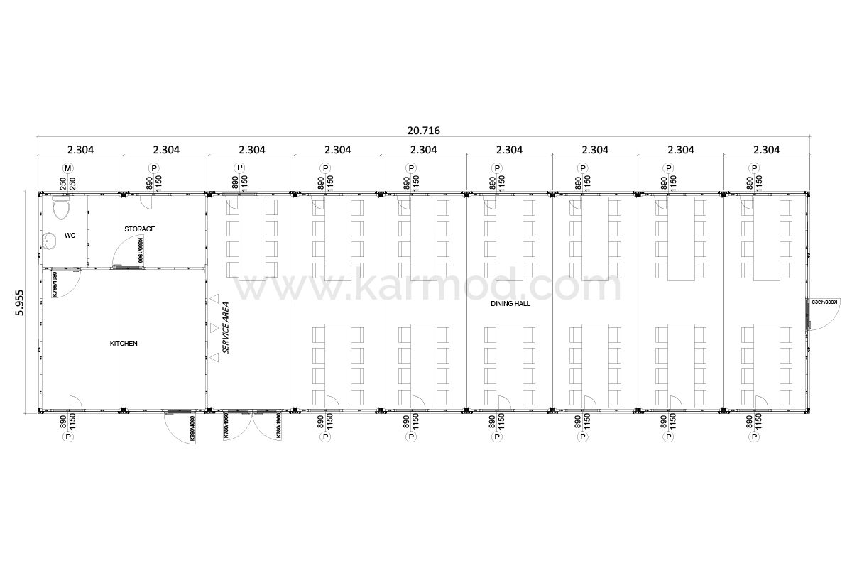 Кармод є одним із провідних імен у галузі, що пропонує високоякісні та довговічні рішення для контейнерів їдальні. Цей просторий їдальня контейнер на 123 м² виділяється своєю здатністю обслуговувати 104 особи. Високоізольовані матеріали забезпечують енергоефективність і комфортний обідній середовище у будь-який сезон. Марка Кармод відома як надійна компанія, яка завжди ставить задоволення клієнтів на перше місце. З Їдальнею Контейнером на 123 м², Кармод пропонує своїм користувачам доступні, високоякісні та комфортабельні житлові простори.