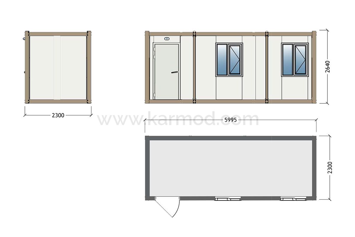 Модульна структура сендвіч панельного контейнера зі збірного сталевого каркаса дає можливість багаторазового збирання та розбирання. Блок контейнер можна розібрати на збірні елементи та з легкістю перевезти на інший об'єкт. Поряд зі стандартними контейнерами 2,3х6 м, компанія Кармод, перша в світі, виготовила розбірні контейнери розмірами 3х7 та 3х9, з можливістю пакування в плоскі пакети, які у великій кількості можна перевозити в стандартних фурах.