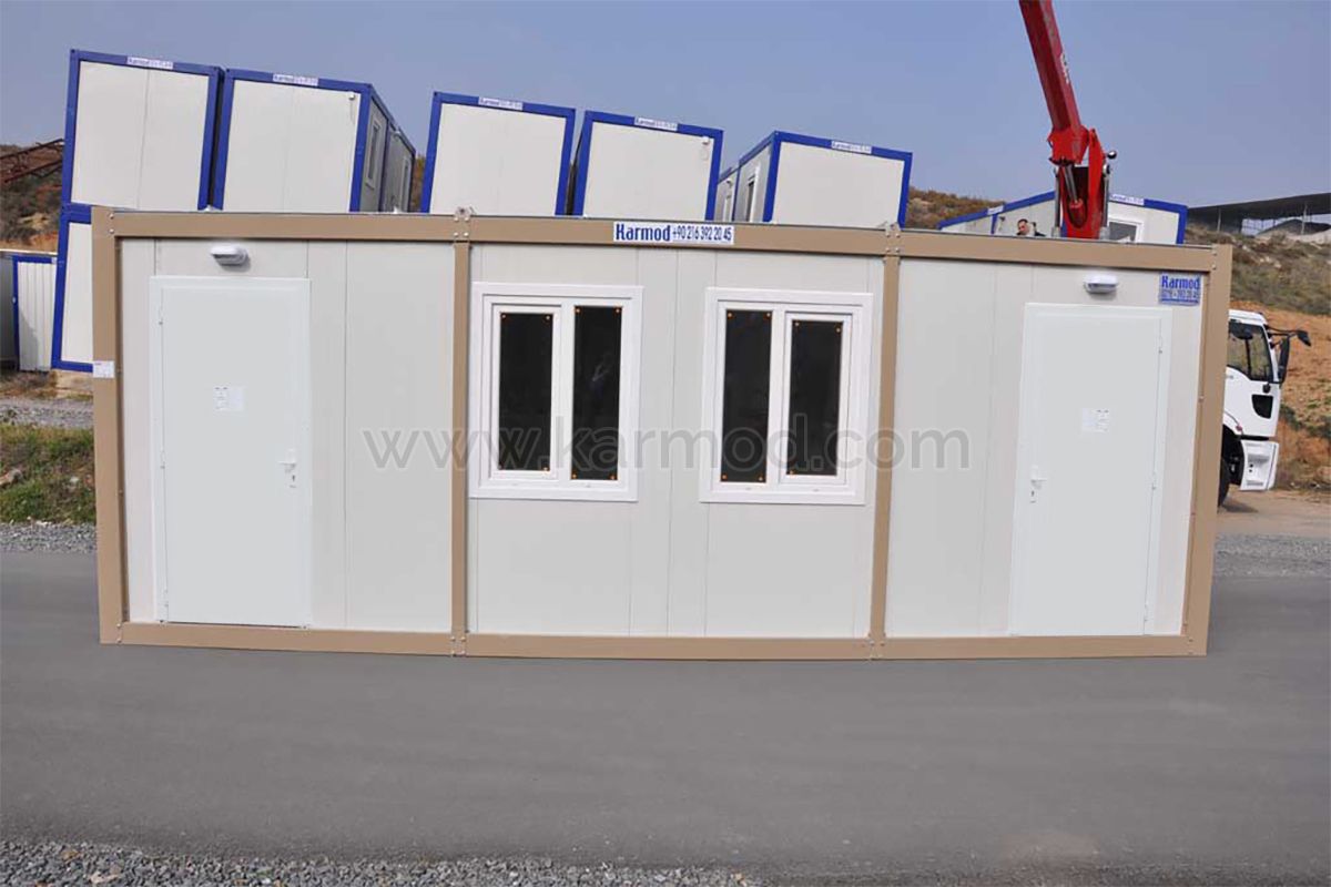 Блок контейнери складаються із сполучених між собою болтами профілів, виготовлених з нержавіючої оцинкованої сталі, і заповнених сендвіч панелями з утеплювачем з спіненого полістиролу ПСВ. Всі металеві частини контейнерів пофарбовані за технологією автомобільного фарбування в сушильних камерах. Кармод перша компанія Туреччини, яка використовувала покрівельні сендвіч панелі товщиною в 125 мм. Кармод перша компанія Туреччини, яка використовувала покрівельні сендвіч панелі товщиною в 125 мм. Завдяки 50 міліметровим стінам, якісним дверям і вікнам з полівінілхлориду, контейнери Кармод дозволяють зберігати до 60% енергії. В як основа використовуються плити ЦСП, зверху яких настелен ПВХ лінолеум. Внутрішні двері виготовлені з плит МДФ. Контейнери Кармод екологічно дружні, оскільки при їх виробництві викид вуглецю в навколишнє середовище знижений на 35%.
