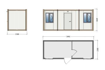 K2002: 2 кімнати, Упакований Контейнер, 2,4х6 м