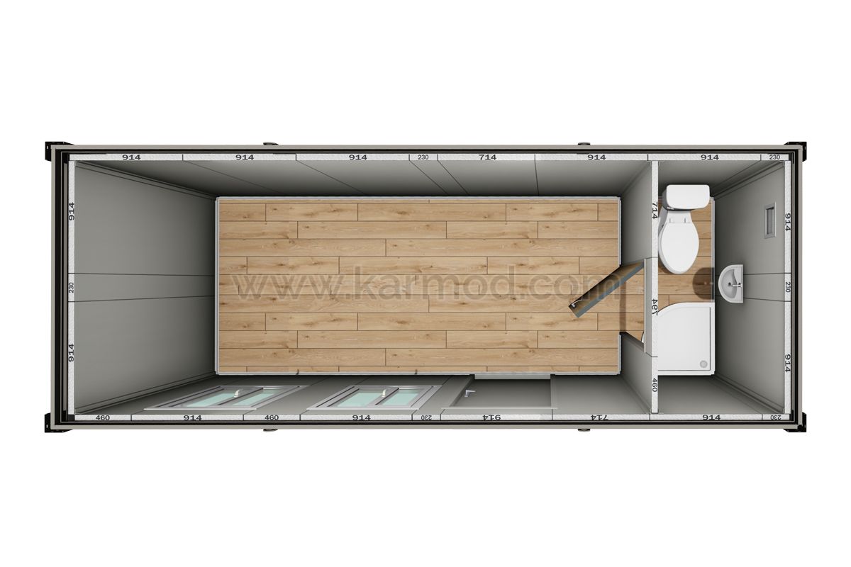 Ця однокімнатна модель контейнера має суміщений санвузол (душова + унітаз + пісуар). Завдяки збірно-модульній структурі, побутівка будівельна легко розбирається і збирається, складується і транспортується на новий об'єкт. Вагончик будівельний використовується де завгодно: модульні містечка для біженців і переселенців, тимчасове житло для постраждалих, житлові контейнерні модулі, будівельні модульні гуртожитки та офіси, представницькі, мобільні приміщення для будь-яких потреб. Для тих, хто хоче купити будівельний вагончик, битовки, блок контейнер, ми пропонуємо макисмально знижені ціни від виробника.