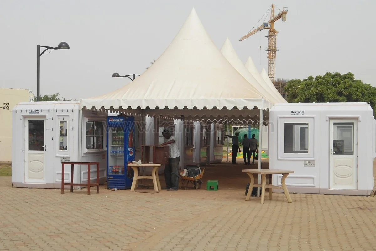 Наші модульні кабіни, широко відомі як «Пости охорони» використовуються в якості торгового павільйону в Судані. В цілому 20 одиниць кабін були спроектовані для різного використання, і встановлені в якості ларьків на центральній площі в столиці місті Хартумі.