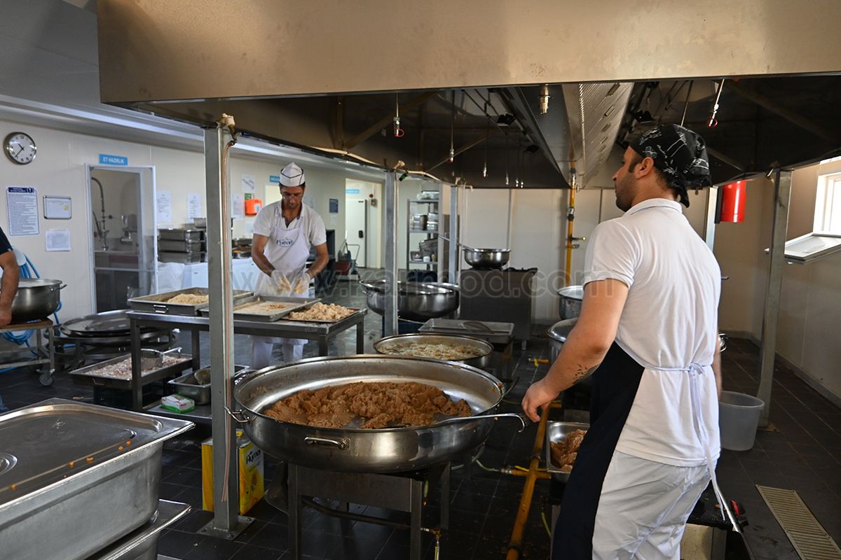 У приміщенні їдальні готується триразове гаряче харчування для мобілізованих на автомобільний завод в Туреччині. Всередині будівлі розташована велика кухонна секція. У цій секції, яка має спеціальну систему вентиляції, майстри готують для робітників смачні страви. Ця ділянка також оснащена промисловим кухонним обладнанням. Крім кухні, важлива секція також підготовлена під комору. Матеріали, необхідні для планування щоденного меню, закуповуються заздалегідь і зберігаються в цій зоні. Будівля має подвійний вхід. Вхідні двері до комори залишаються широкими для проїзду візків з піддонами. Збоку від будівлі знаходиться адміністративно-господарська частина. У цій секції є кімната адміністратора та кімната шеф-кухаря. Прохід до зони приготування їжі на кухні здійснюється за допомогою турнікетної системи і тільки уповноважений персонал допускається з використанням засобів гігієни, таких як калоші.