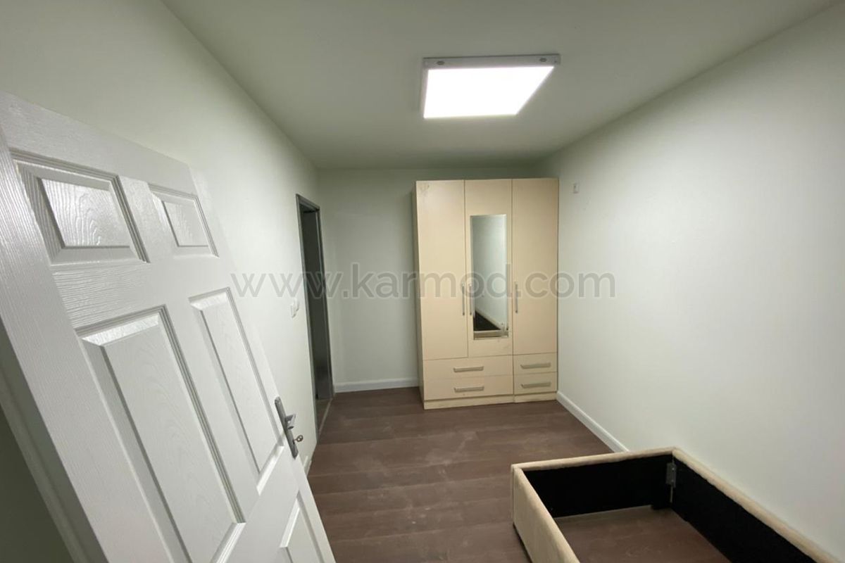 Наш клієнт, якому було важко зробити вибір серед безлічі моделей будинків компанії Karmod, вирішив замовити будівництво сталевого будинку моделі 4+1. Готовий будинок площею 118 м2 був виготовлений і упакований за два дні з плануванням після етапу узгодження. Будинок був повністю готовий до відвантаження. Каркаси сталевих конструкцій, включно з несучими конструкціями стін, даху, верхнього поверху, сталевими дверима і міжкімнатними щитовими дверима, склопакетами з ПВХ огорожею, електро- і водопровідно-каналізаційними монтажними матеріалами та арматурою, сантехнічними матеріалами, як-от умивальниками й унітазами, інтер'єром і картинами, було зібрано разом. Сталевий будинок, який був завантажений на один автомобіль у день відправки, прибув на місце встановлення в Тирану через два дні.