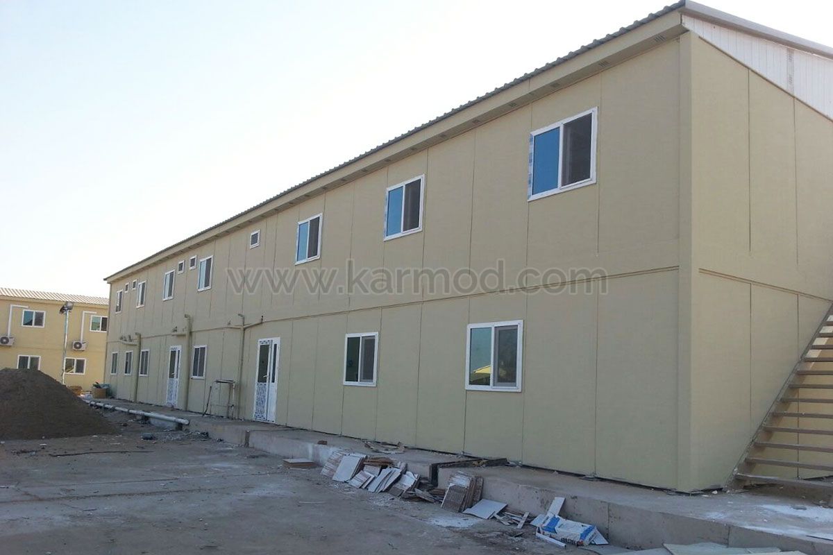 Двоповерхова будівля складається з двох блоків і вироблена відповідно до міжнародних стандартів модульних робочих селищ. Через цінових переваг, пов'язаних з можливістю за найкоротший час провести і змонтувати, по всьому світу вибирають наші швидкобудуюємі модульні будівлі та офіси. Наші конструкції мають ізольовані стіни і покрівельні елементи, що забезпечують високу ізоляцію в жаркому або холодному кліматі.