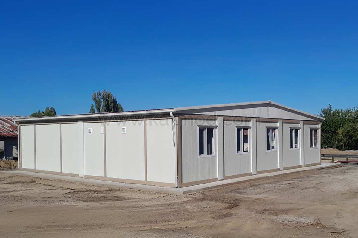 Ми відправили нашу офісну конструкцію площею 144 м² для цього проекту на одній вантажівці, скориставшись перевагами розбірної системи. Наша команда з двох супервайзерів завершила монтаж всього за 6 днів. Легкість, яку забезпечують системи болтів і гайок та з'єднання без зварювання, була ключовим фактором швидкого монтажу. Контейнерні конструкції, відправлені на місце проекту в Ортакьой, Болгарія, складаються з 10 розбірних блоків. Наші команди супервайзерів Karmod виконали монтаж за допомогою крана в призначеній зоні на місці. 10 блоків були зібрані відповідно до комбінованого плану контейнерів.