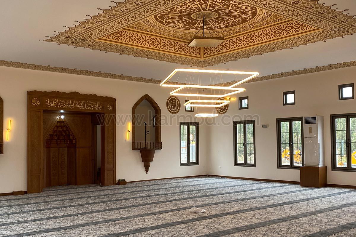 Внутрішня каліграфія та дерев'яні прикраси мечеті були натхненні сельджуцькою та османською архітектурою. Мімбер, міхраб, кафедра та муедзин були прикрашені дерев'яними аплікаціями та різьбленням. У будівництві муедзина використовували деревину лімба і застосовували майстерність, характерну для сельджуцької архітектури. Розташування вікон забезпечило максимальне проникнення денного світла у внутрішній простір. При проектуванні також були враховані звукоакустичні особливості. Мечеть має найкращий розподіл звуку навіть без використання мікрофону.