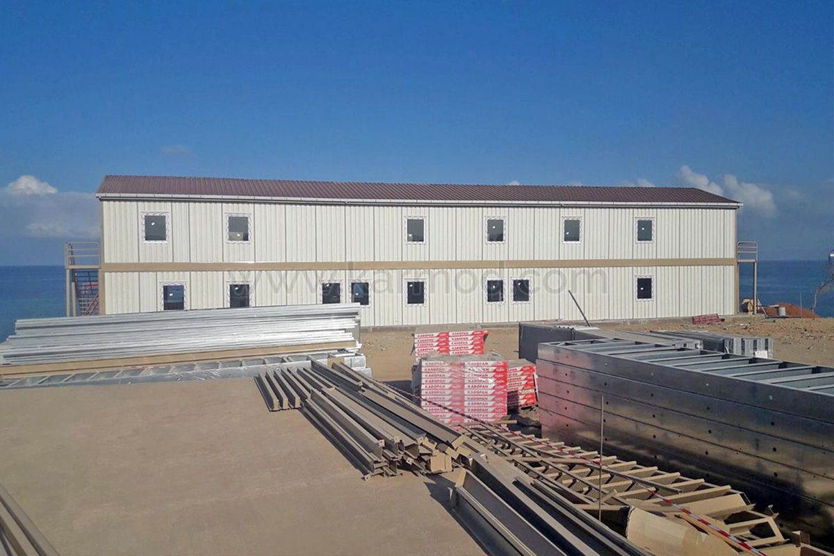 Завдяки системі болтових з'єднань і зчеплень збірні будівлі надійні і довговічні. Можливість розбирання дозволяє компаніям використовувати їх в різних проектах, що забезпечує значну економію. Офісні будівлі, які ми підготували для цього проекту, будуть використовуватися протягом 5 років в Джібуті, де управлінські та технічні команди будуть працювати на будівництві об'єкта, який по завершенню буде очищати морську воду з об'ємом в 45 000 кубічних метрів питної води в день. Загальна площа двох блоків будівель становить 748 квадратних метрів.
