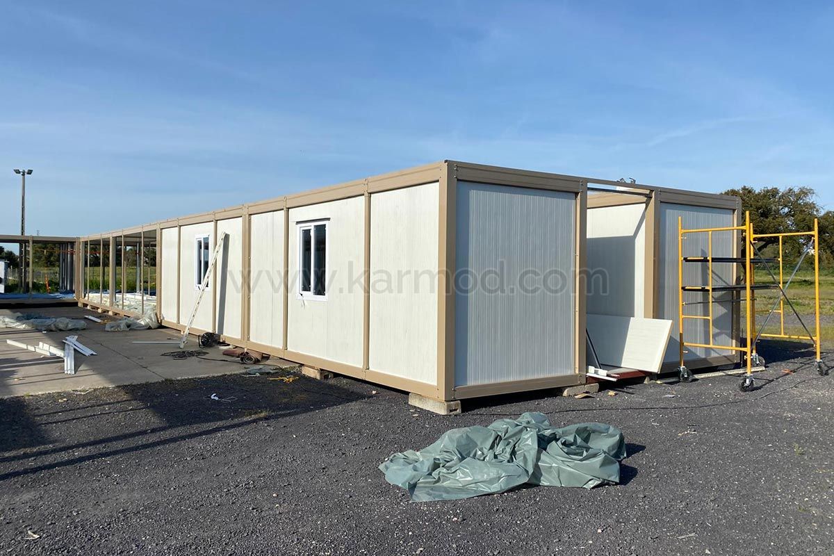 Виробництво офісних та гуртожиткових будівель загальною площею 529 м² було завершено за 12 днів на нашому заводі в Тузлі. Конструкції були доставлені до Португалії морським транспортом. Монтаж будівель, які були доставлені з порту на місце проекту, розпочався під наглядом наших команд. Монтаж офісних та контейнерних будівель будівельного майданчика, включаючи туалети та душові, був завершений і зданий в експлуатацію протягом 20 днів.