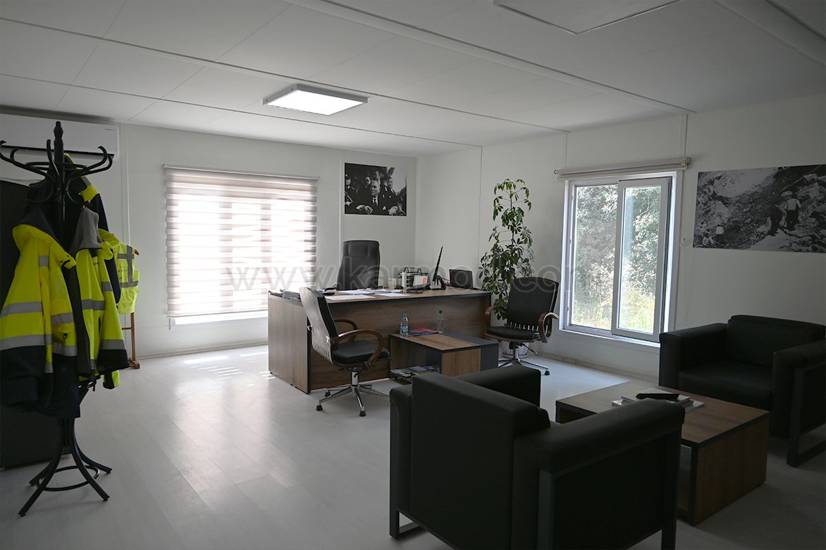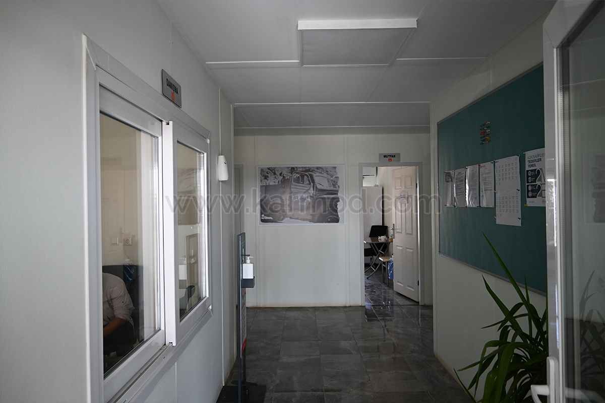 Aydınlar İnşaat є одним з брендів, які беруть участь у будівництві заводського корпусу цього надзвичайно важливого для Туреччини проекту. Компанія зі своєю командою фахівців є одним з важливих учасників інфраструктурних робіт з будівництва заводу. З цієї причини керівництво компанії та великий штат співробітників перебувають у польових умовах. Ми побудували і поставили сучасну швидкомонтовану офісну будівлю, в якій буде здійснюватися процес управління компанією Aydınlar İnşaat. Ми завершили будівництво швидкомонтованої офісної будівлі площею 281 м2 за 16 днів за допомогою нашого досвіду Karmod і передали її в користування керівництву компанії. Офісна будівля TOGG Aydınlar İnşaat має 10 окремих робочих кабінетів, а також 1 конференц-зал. У проекті офісу також були передбачені чоловічі та жіночі туалети.