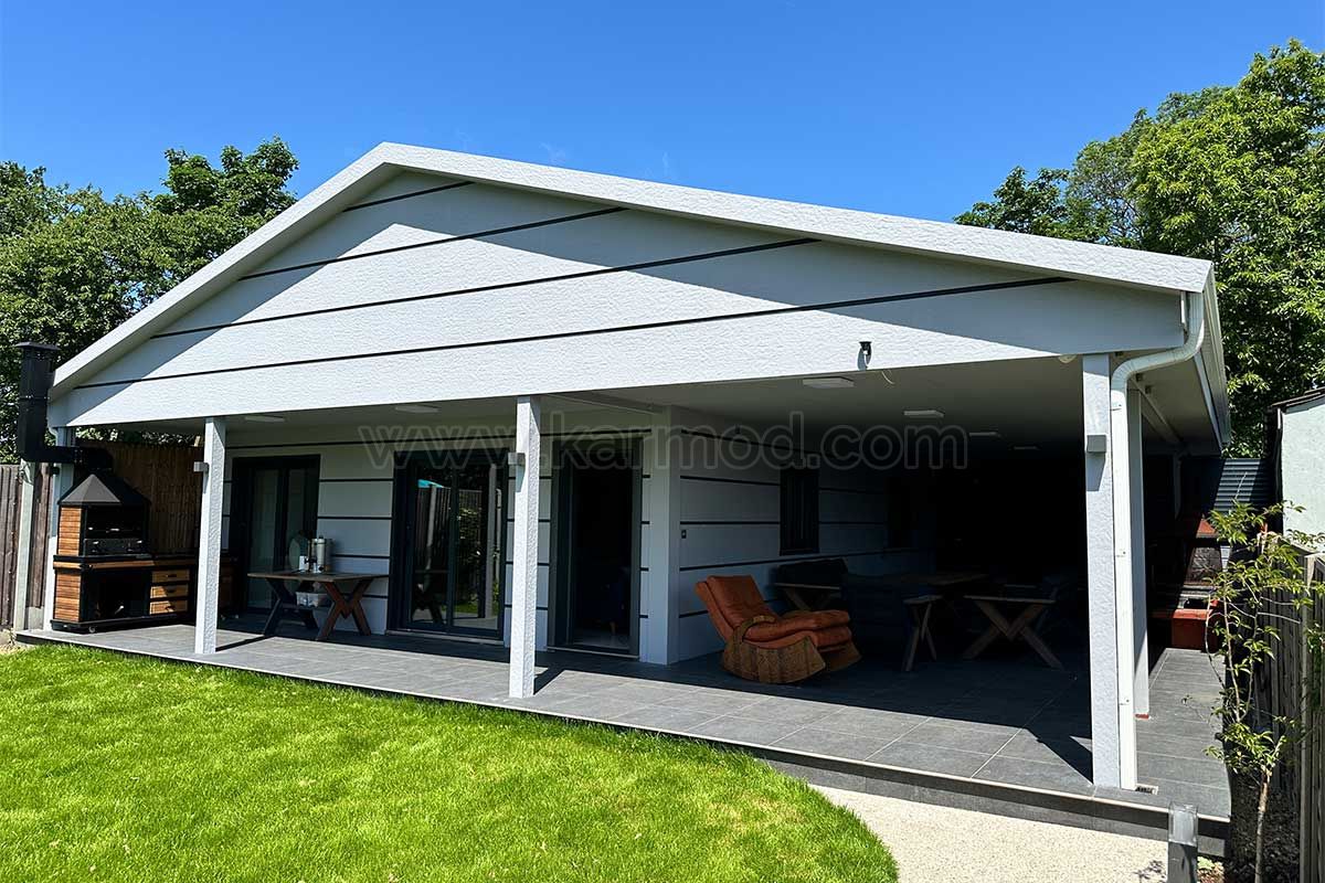 Як компанія Karmod, ми продовжуємо реалізовувати проекти в Європі. Ми завершили цей проект у Великобританії в категорії легких сталевих будинків. Наш сталевий будинок, спроектований спеціально для використання як окремий житловий будинок у столиці Лондоні, має площу 121 м².