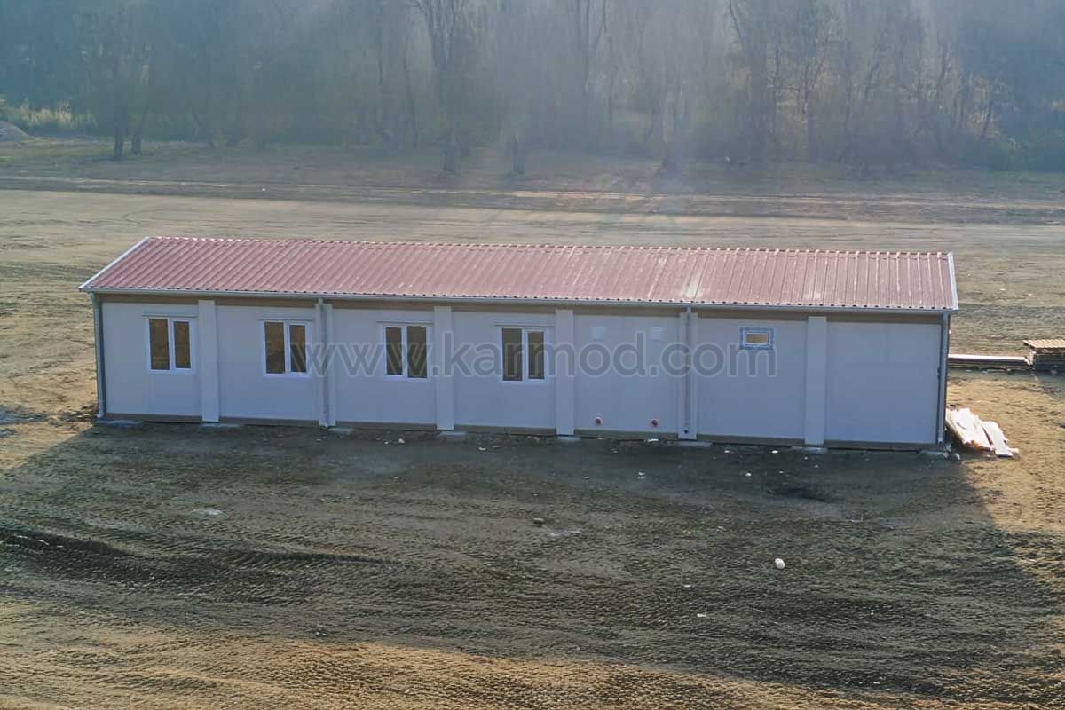 Ще одна будівля, яку ми побудували для компанії, що надає послуги з продажу та оренди будівельної техніки, — це контейнерний гуртожиток. Одноповерхова споруда включає 30 незалежних кімнат. Будівля може одночасно розмістити 120 операторів будівельної техніки. Гуртожиток площею 271 м² також включає туалети та душові для 120 осіб. Завдяки нашому гуртожитку ми вирішили проблему розміщення технічного персоналу компанії.