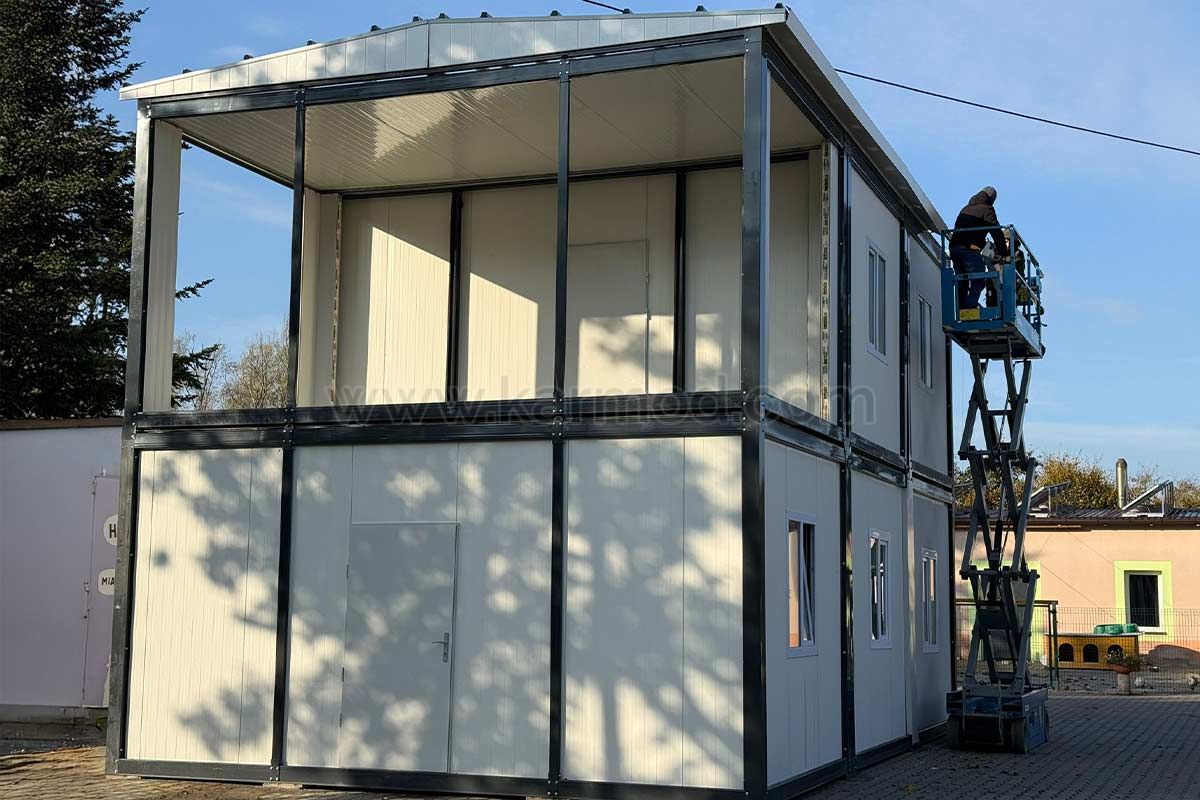 Наша будівля центру підготовки пошуково-рятувальних собак була спроектована як двоповерхова споруда площею 87 м² з використанням нашої модульної контейнерної моделі нового покоління. У будівлі розміщені кімнати керівника та тренерів центру підготовки пошуково-рятувальних собак, ветеринарна кімната, лабораторія, їдальня та кімната відпочинку. У будівлі також є спальня для розміщення доглядачів та тренерів, які перебувають на чергуванні. Конструкція, що складається з 6 модулів, виготовлених на заводі Karmod за допомогою системи розбірних пакетів, була доставлена до Польщі на одній вантажівці.