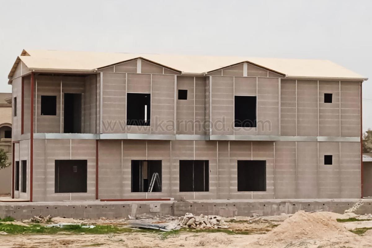 На першому етапі було виконано один зразок монтажу будинків, які будуть виготовлені в рамках проекту. Виробництво будинку, спеціально розробленого з урахуванням очікувань замовника в нашому технічному офісі, було реалізовано на сучасних потужностях компанії Кармод на Тузлі. Після виробництва будинок був відправлений морем до порту Дерне і доставлений на місце реалізації проекту. Після відвантаження наша команда експертів була готова до роботи на об'єкті. Після початку монтажу збірний будинок, чорновий монтаж якого був завершений за 8 днів, був готовий в цілому за 35 днів.