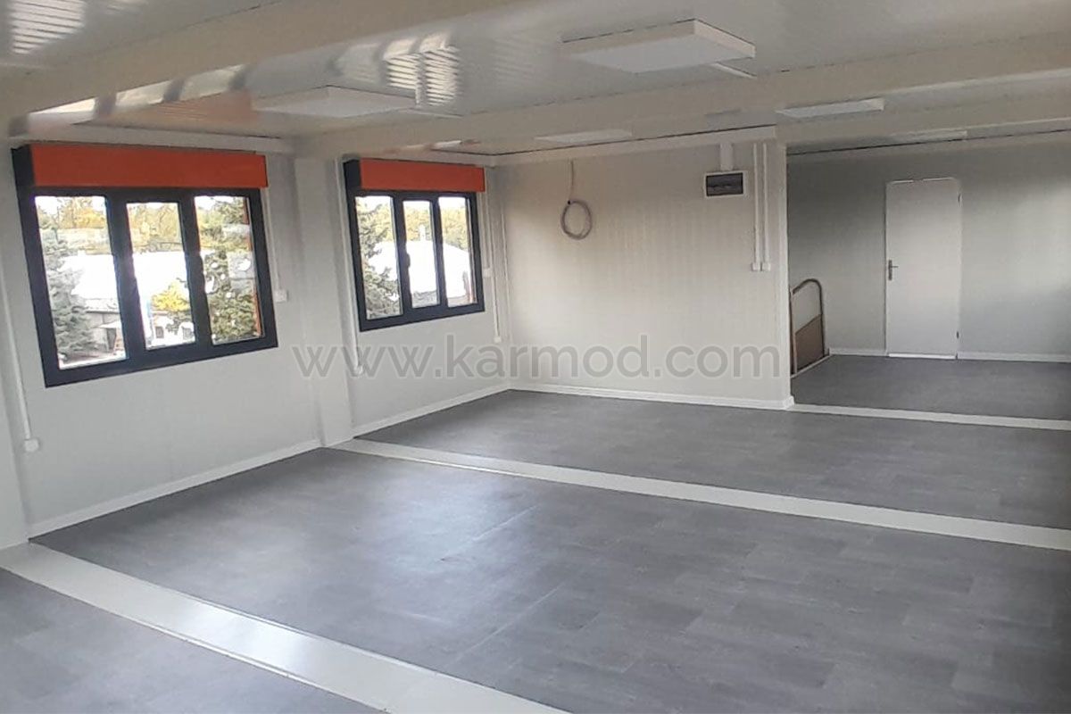 Контейнерна офісна будівля площею 222 м2 була спроектована в технічному бюро Karmod. Виробництво проекту було завершено за допомогою 15 збірно-розбірних контейнерних блоків. 12 з них були виготовлені в розмірах 230x595, а 3 - в розмірах 300x600.