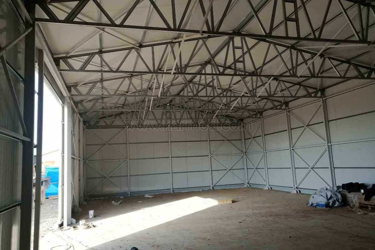 Будівлі проєкту складаються з ангарних споруд. Площа двох ангарів, виготовлених з використанням важкої системи сталевих конструкцій, становить 150 м2, а двох - 200 м2. Висота сталевих ангарів становить 6 метрів, що полегшує в'їзд і виїзд сільськогосподарських машин і дає їм змогу легко маневрувати.