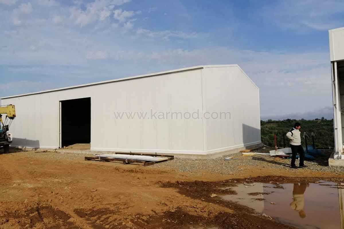 Виробництво 4 ангарів і 1 збірного будинку на замовлення компанії, що займається сільськогосподарською діяльністю, було завершено на сучасних потужностях Karmod протягом декількох днів. Після виробництва конструкції, завантажені на вантажівки, були відправлені на місце реалізації проєкту в місті Зугдіді в Грузії автомобільним транспортом. У той момент, коли відвантаження було завершено, бригади Karmod приступили до монтажу на об'єкті. Монтаж чотирьох окремих будівель ангарів і 1 збірного будинку, збудованих у рамках проєкту, було завершено за короткий час - 18 днів.