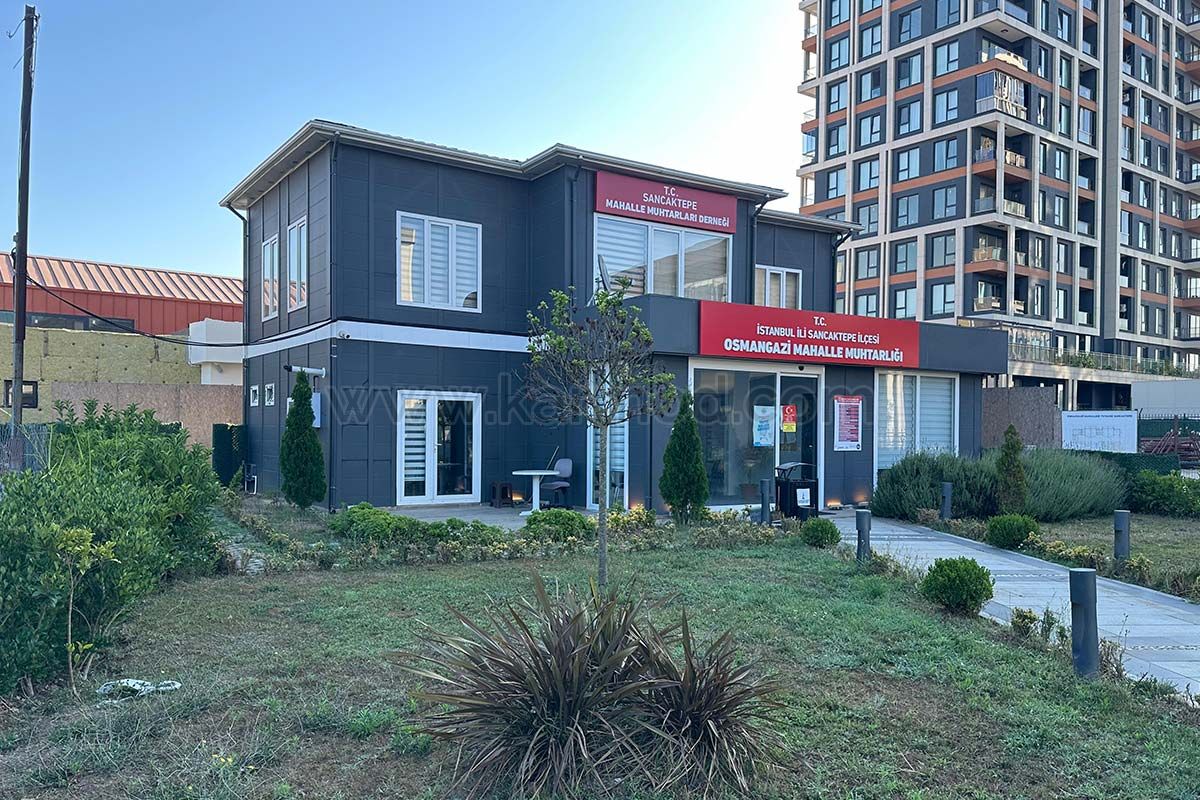 Офіс, спроектований як двоповерхова будівля, був побудований на площі 80 м2. Офіс площею 160 м2 був побудований всього за 9 днів. Рада мікрорайону Османгазі продовжуватиме надавати надійні послуги протягом багатьох років у цій особливій будівлі. При вході в будівлю через головний вхід знаходиться вестибюль. Зліва від входу знаходяться внутрішні сходи, що ведуть на верхній поверх. Ліворуч і в центрі входу розташована по одній кімнаті. Кухня і ванна кімната знаходяться на першому поверсі.