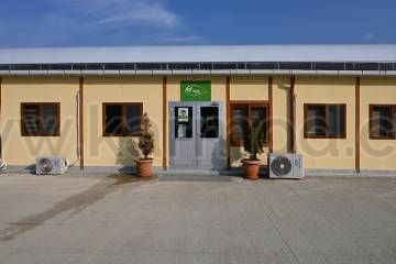 Вхід до збірно-розбірної офісної будівлі тепличного типу здійснюється з правої центральної частини фасаду. З лівого боку від входу знаходиться кабінет керівника, кімната інженера сільського господарства, кімната інженера харчової промисловості, кімната інженера сільського господарства та кімната для нарад. З правого боку розташована їдальня на 25 осіб, молитовна кімната та туалетні приміщення. Для проходу персоналу з головного входу на територію теплиці встановлено турнікет. Вхід на об'єкт дозволяється тільки уповноваженому персоналу через турнікет. За допомогою турнікетного методу вхід на територію теплиці здійснюється лише уповноваженим персоналом, а ризик можливого пошкодження рослин повністю виключається.