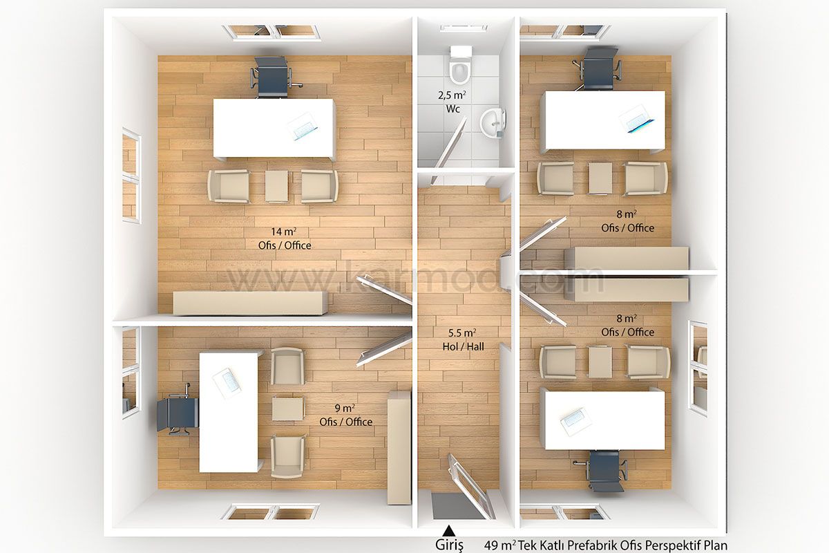 Швидкомонтовані будівлі можуть мати будь-які необхідні розміри і планування. Особливо користуються попитом готові проекти, спеціально розроблені нашими інженерами для максимальної зручності та ергономіки. Залежно від площі, є велика кількість різноманітних типових планувань, починаючи від варіантів 1 + 1 і закінчуючи 3 + 1. Компанія Кармод може виробляти збірні елементи під будь-які проекти готових швидкомонтованих будівель.