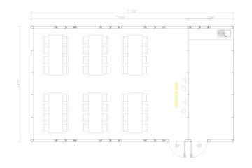 Їдальня на 48 осіб від Кармод площею 74 м² пропонує практичні рішення для потреб у харчуванні середніх груп за допомогою швидких процесів виробництва та монтажу. Цей просторий модульний їдальний зал розроблено відповідно до динамічних потреб і може бути швидко готовий до використання. Надійна компанія Кармод з референціями у 135 країнах має лідируючу позицію на глобальному ринку. Ця передфабрикована їдальня полегшує надання послуг харчування для середніх груп та забезпечує ефективне робоче середовище.