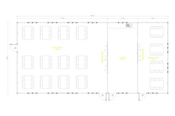 Кармод пропонує ідеальне рішення з відмінною ємністю за прийнятною ціною - Їдальню на 96 осіб площею 170 м², яка ідеально підходить для великих підприємств, навчальних закладів та будівельних майданчиків. Ця простора їдальня розроблена для задоволення потреб великих команд і забезпечує швидке рішення завдяки легкому монтажу. Завдяки високим ізоляційним характеристикам, ця конструкція максимізує енергозбереження та робить вашу їдальню більш комфортною. Кармод пропонує доступні та якісні рішення для ефективного задоволення харчових потреб великих груп.