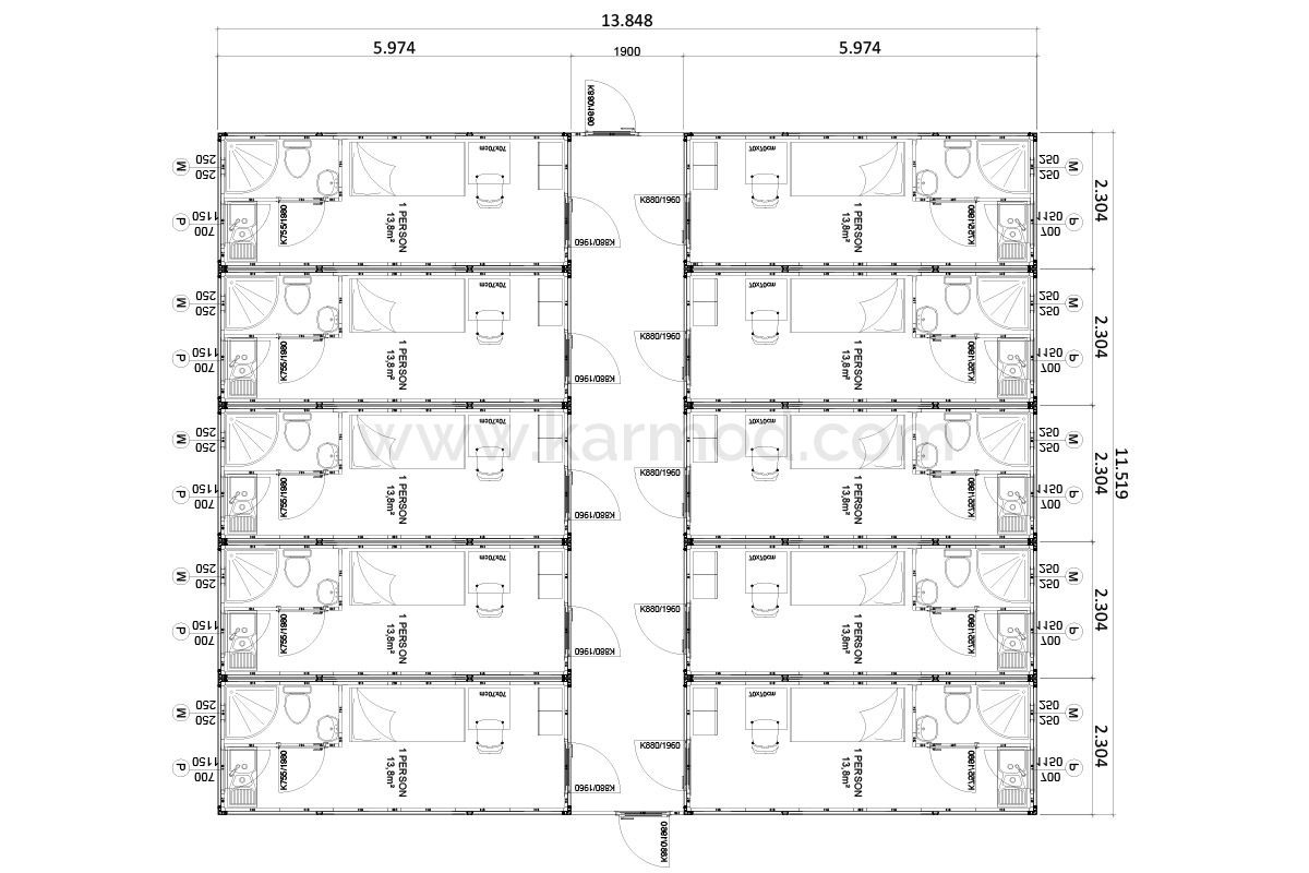 Кармод пропонує комфорт та функціональність за доступною ціною зі своїм 160 м² Інженерним Гуртожитком, розробленим спеціально для 10 білих комірців. Цей просторий гуртожиток забезпечує ідеальне житлове середовище для інженерів та інших професіоналів, пропонуючи високостандартний досвід проживання навіть у складних умовах роботи. Високі ізоляційні характеристики максимізують енергозбереження, забезпечуючи комфортний внутрішній клімат. Це інноваційне рішення Кармоду з оптимальним використанням простору та сучасним дизайном займає місце серед найкращих виробників у галузі.