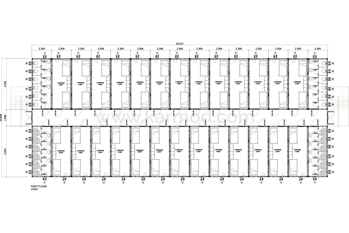 958 м² Робітничий Гуртожиток від Кармоду пропонує значні переваги у часі та витратах завдяки процесу швидкого монтажу, надаючи розробникам проектів важливі переваги. Досвідчені монтажні команди швидко зводять це масштабне житлове рішення високого стандарту, сприяючи прискореному просуванню проектів. Як бренд, який найбільше вибирають у галузі за "швидке виробництво та монтаж", Кармод відомий своїми надійними та ефективними рішеннями, маючи референції у 135 країнах і є визнаним лідером на глобальному рівні.